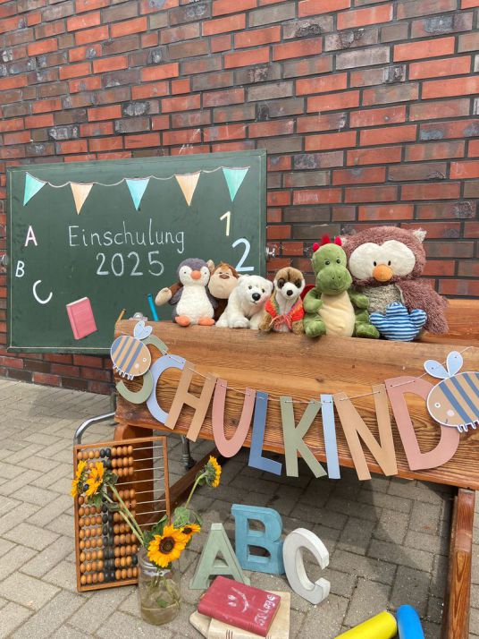 Am Donnerstag, den 28.08.2025, war für zahlreiche Erstklässler und ihre neuen Klassenlehrerinnen ein besonderer Tag: die Einschulung! Gespannt und aufgeregt kamen die Kinder mit ihren Eltern in die Turnhalle unserer Grundschule, wo alles für den großen Tag vorbereitet war. Unsere Schulleiterin Frau Schwanke begrüßte alle Kinder und deren Eltern herzlich, bevor sie das Wort an die Schülerschaft übergab. Gemeinsam hatten Kinder der dritten Klassen ein Lied für die neuen Erstklässler einstudiert. Danach wurde extra für die neuen Schüler ein Theaterstück aufgeführt, welches Frau Öztürk mit Kindern aus allen JÜL-Klassen vor den Ferien eingeübt hatte. Zu sehen gab es „Die Heule Eule“. Nach dieser tollen Leistung war es dann soweit: Frau Schwanke rief die neuen Schüler zu ihren Klassenlehrern auf die Bühne. Gespannt sahen die neuen Affen, Eisbären, Drachen, Erdmännchen, Eulen und Pinguine auch ihre neuen Klassenkameraden. Nach Glückwünschen durch die Schulleitung und einer kleinen Schultüte für die Lehrer ging es dann richtig los. Gemeinsam gingen alle Klassenlehrer mit ihren Klassen dann ins Klassenzimmer, wo die erste gemeinsame Schulstunde auf dem Plan stand, während es für die Eltern im Elterncafé Gelegenheit zum Austausch und Kennenlernen gab.