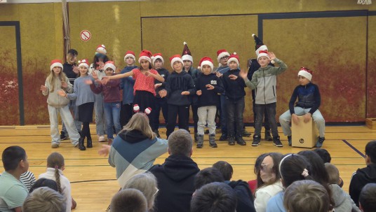 Auch dieses Mal gab es ein buntes Programm, das viele Klassen aktiv mitgestaltet haben. So konnte die Schulgemeinde einen tollen Rap Tanz von Kindern aus dem Jahrgang 4 bewundern und die Talentgruppe Turnen zeigte ihr ganzes Können bei turnerischen Elementen, die mit viel Applaus belohnt wurden. Die Klasse 4b hat die Schülerschaft mit dem Lied „Last Christmas“ verzaubert. Weihnachtliche Gedichte wurden von der Klasse 3b vorgetragen. Frau Schwanke war auch ganz begeistert von all den sportlichen Leistungen, die unsere Kinder bei einem Indiaca Turnier und bei den Kreismeisterschaften im Fußball gezeigt haben. Viel Applaus gab es für die Darbietungen und die Erfolge bei den Turnieren.
