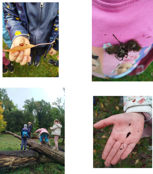 Einen wunderschönen Tag im Wald erlebten alle Klassen der Grundschule Lage im Oktober. Während einige Klassen bei wunderschönem Sonnenschein den Wald und seine Farbenpracht im Herbst erleben konnten, wurden andere Klassen nass und erlebten den Wald von seiner nassen und matschigen Seite. Beides machte den Kindern aber Spaß, denn auch einige Waldbewohner, wie Schnecken, Mücken und Marienkäfer konnten entdeckt und genauer beäugt werden. Besonders viel Spaß brachten die Kletten, die gegenseitig ausprobiert wurden. Auch einige Äpfel, die auf der Streuobstwiese lagen wurden verzehrt. Ein abschließender Besuch bei der Eichenallee in dem Bürgerpark durfte bei dem Ausflug natürlich nicht fehlen.